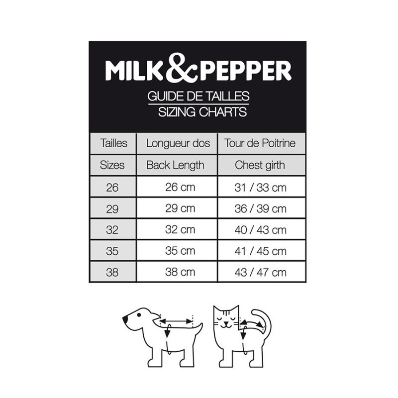 Bitte messen Sie Ihren Hund vor der Größenauswahl unbedingt aus und achten Sie besonders auf Brustumfang und Rückenlänge. Sollten Ihre Messungen zwischen zwei Größen liegen, empfehlen wir Ihnen, die größere Größe zu wählen.