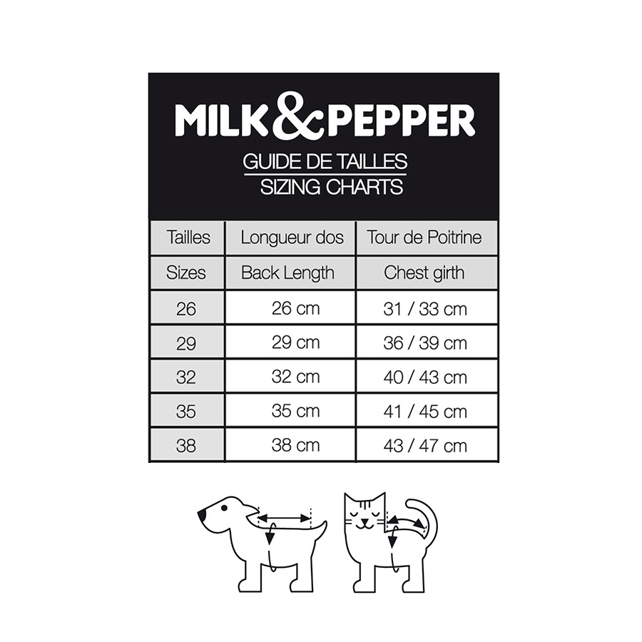 Bitte messen Sie Ihren Hund vor der Größenauswahl unbedingt aus und achten Sie besonders auf Brustumfang und Rückenlänge. Sollten Ihre Messungen zwischen zwei Größen liegen, empfehlen wir Ihnen, die größere Größe zu wählen.