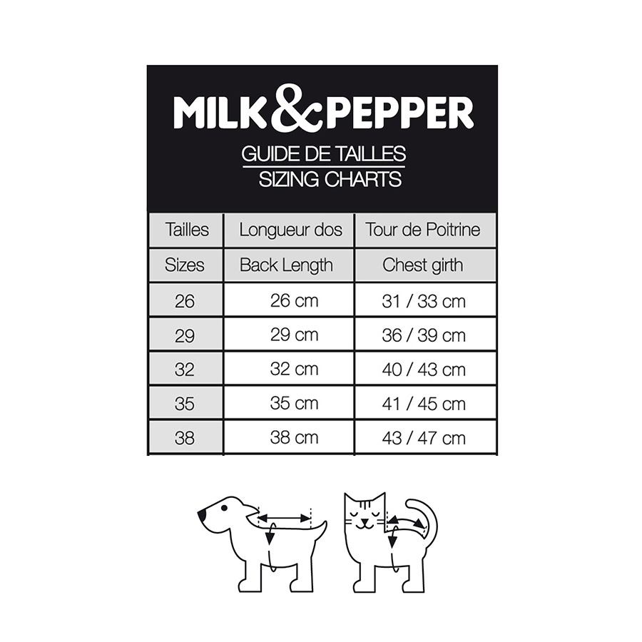 Bitte messen Sie Ihren Hund vor der Größenauswahl unbedingt aus und achten Sie besonders auf Brustumfang und Rückenlänge. Sollten Ihre Messungen zwischen zwei Größen liegen, empfehlen wir Ihnen, die größere Größe zu wählen.